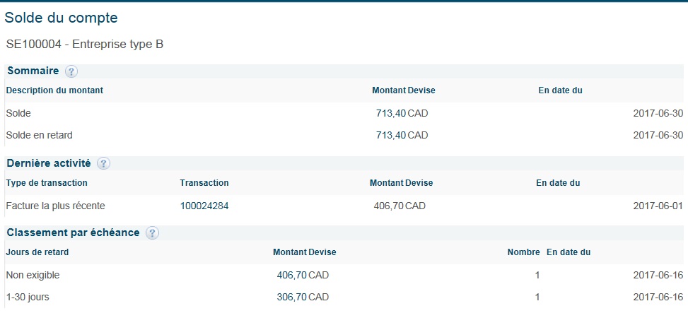 5. Voici les renseignements qui s’afficheront relativement au solde de votre compte :